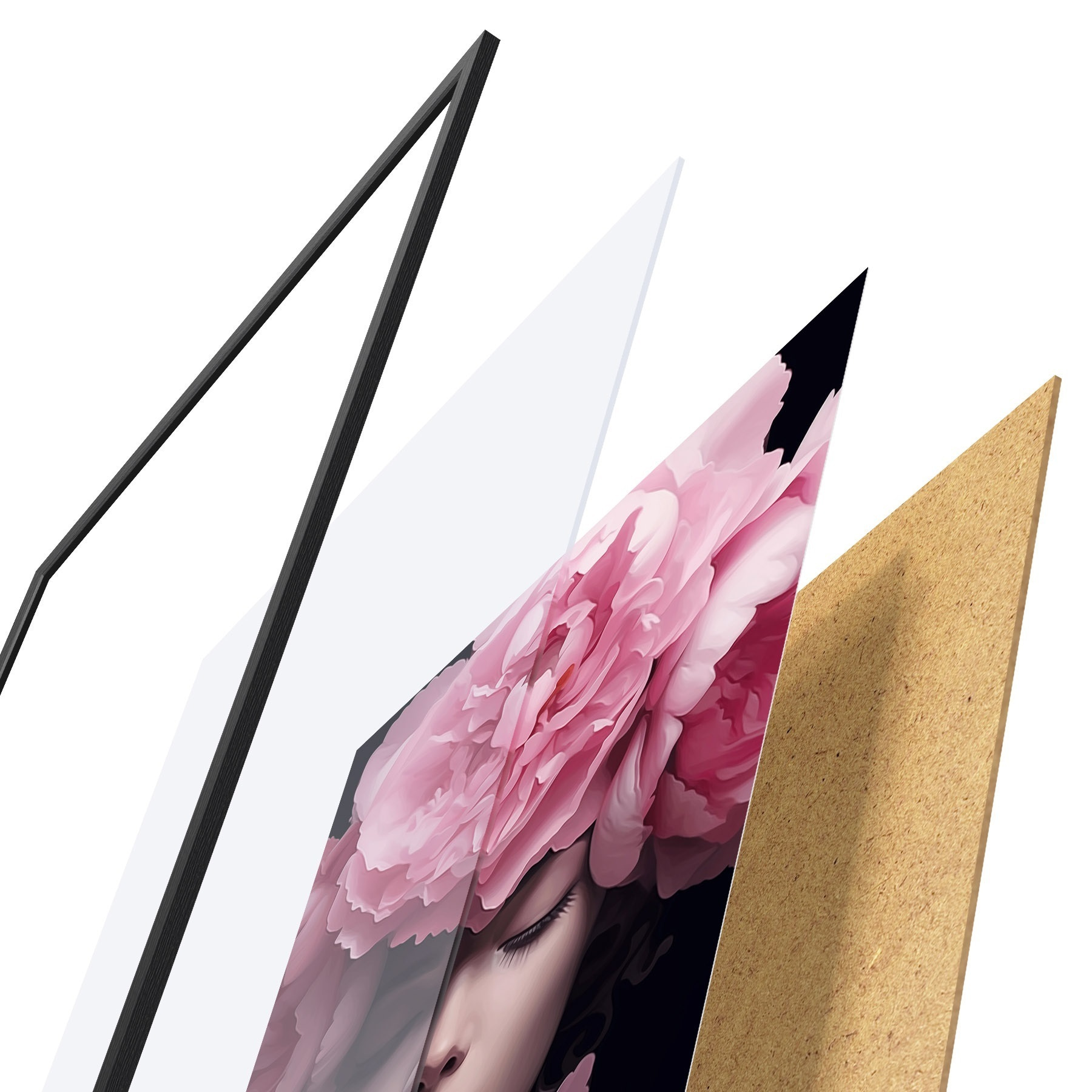 Plakatą sudaro rėmas, pleksiklas, atspausdintas vaizdas ir medžio drožlių plokštės pagrindas. Plakatą galima iš karto pakabinti ant sienos dėl kitoje pusėje esančių laikiklių.