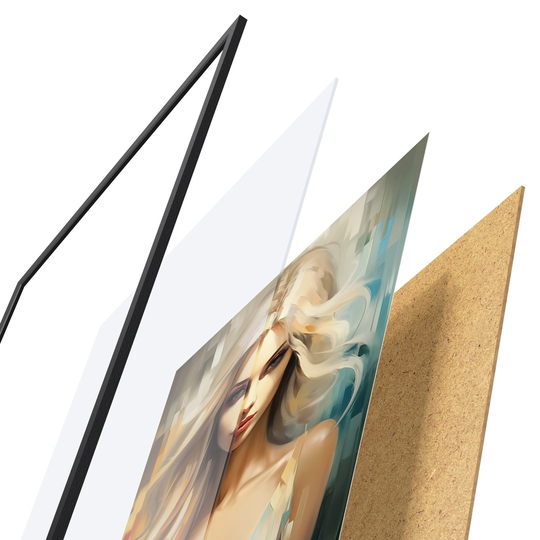 Plakatą sudaro rėmas, pleksiklas, atspausdintas vaizdas ir medžio drožlių plokštės pagrindas. Plakatą galima iš karto pakabinti ant sienos dėl kitoje pusėje esančių laikiklių.