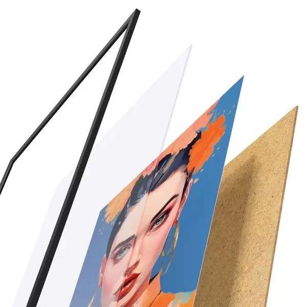 Plakatą sudaro rėmas, pleksiklas, atspausdintas vaizdas ir medžio drožlių plokštės pagrindas. Plakatą galima iš karto pakabinti ant sienos dėl kitoje pusėje esančių laikiklių.