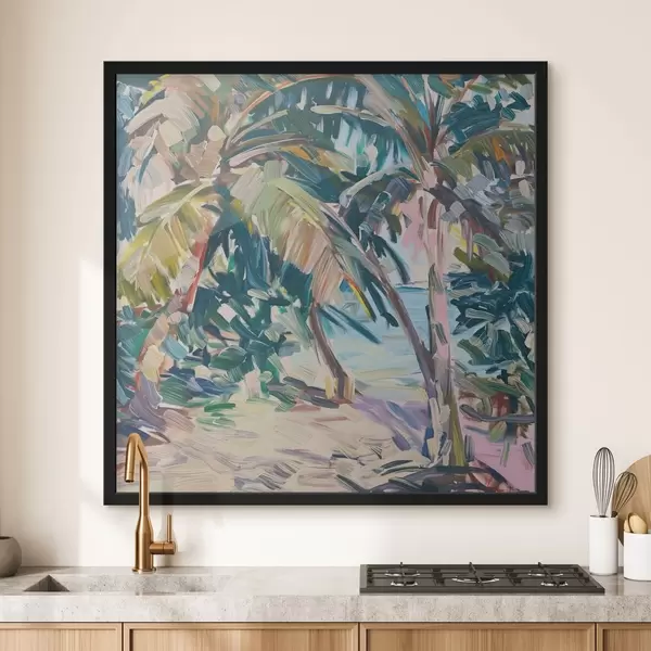 Plakatas Palmių abstrakcija, teptuko potėpių imitacija f44513