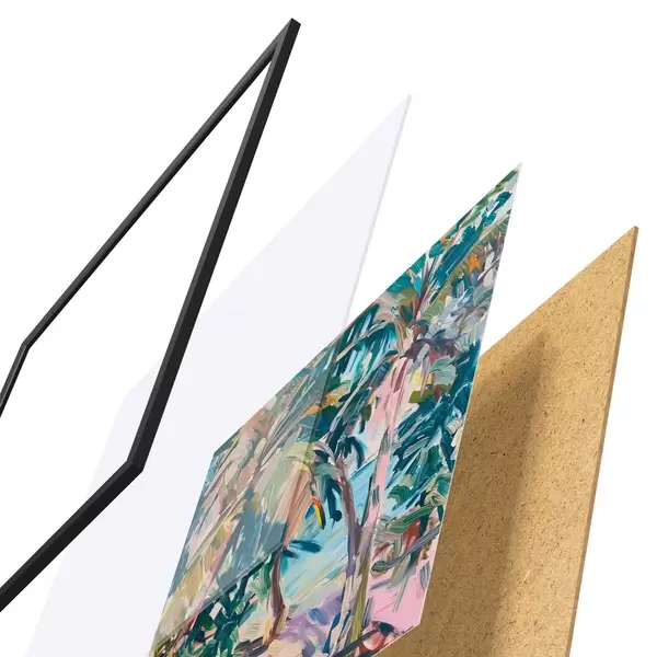 Plakatą sudaro rėmas, pleksiklas, atspausdintas vaizdas ir medžio drožlių plokštės pagrindas. Plakatą galima iš karto pakabinti ant sienos dėl kitoje pusėje esančių laikiklių.