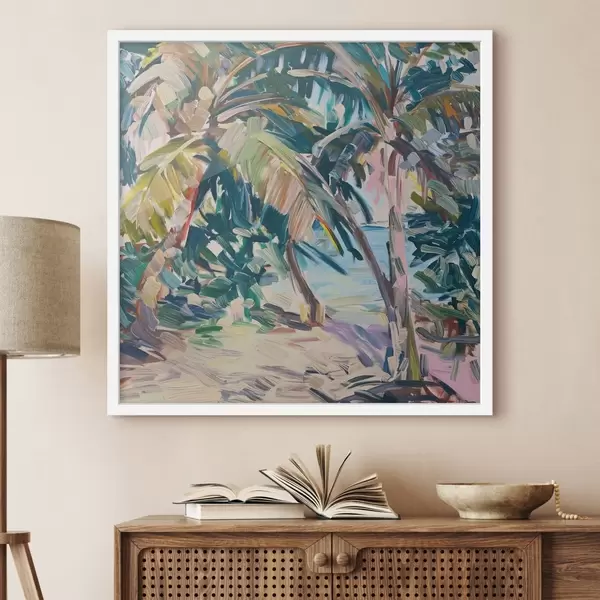 Plakatas Palmių abstrakcija, teptuko potėpių imitacija f44513