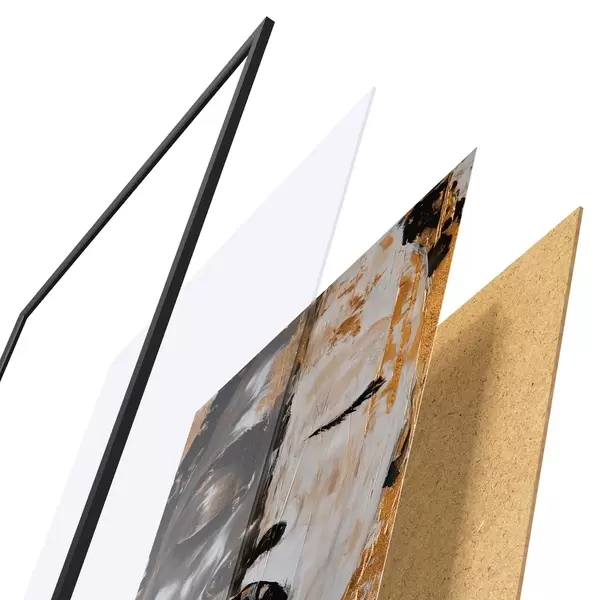 Plakatą sudaro rėmas, pleksiklas, atspausdintas vaizdas ir medžio drožlių plokštės pagrindas. Plakatą galima iš karto pakabinti ant sienos dėl kitoje pusėje esančių laikiklių.