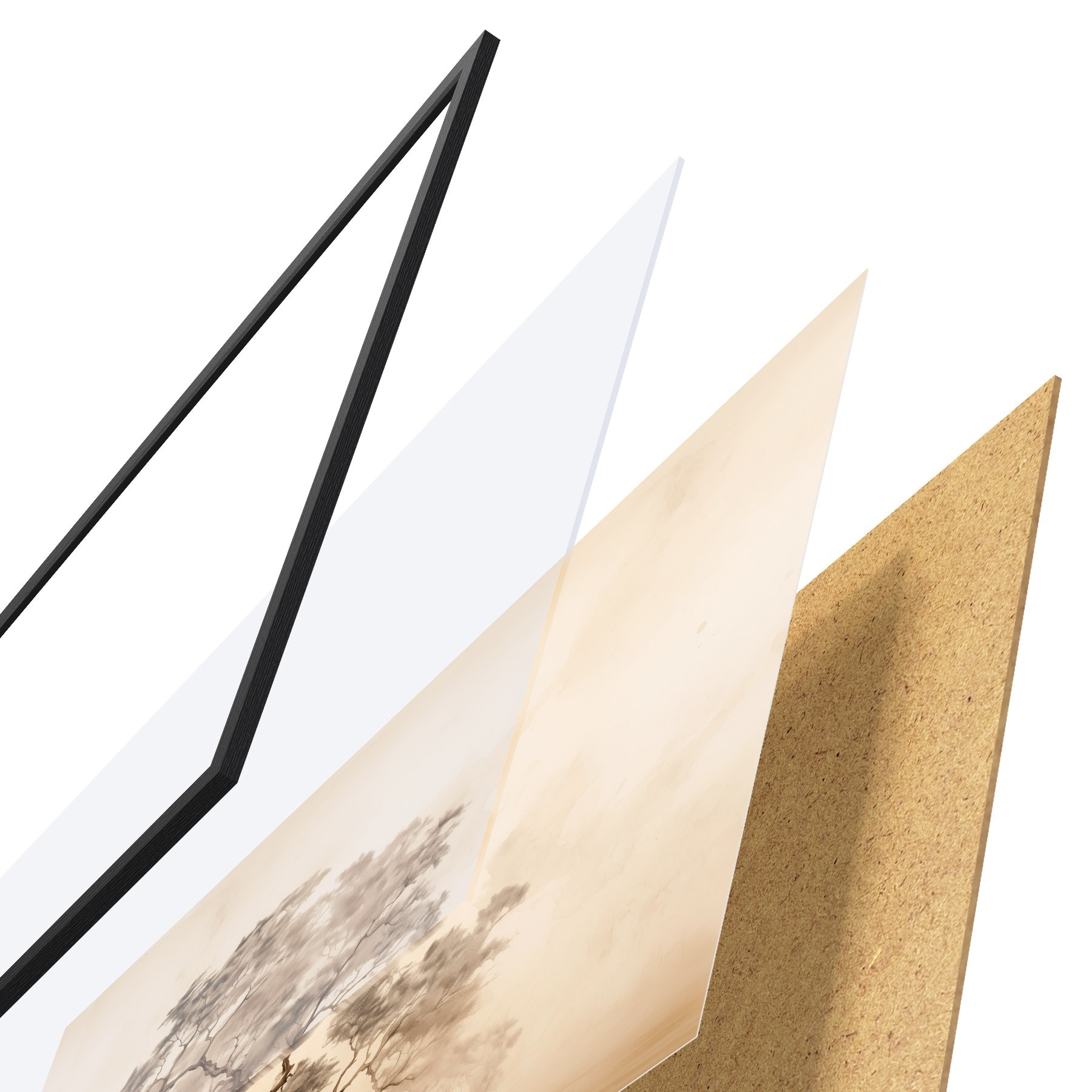 Plakatą sudaro rėmas, pleksiklas, atspausdintas vaizdas ir medžio drožlių plokštės pagrindas. Plakatą galima iš karto pakabinti ant sienos dėl kitoje pusėje esančių laikiklių.