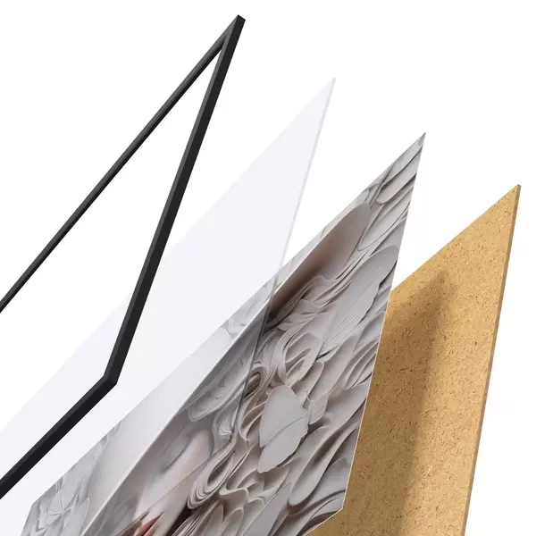 Plakatą sudaro rėmas, pleksiklas, atspausdintas vaizdas ir medžio drožlių plokštės pagrindas. Plakatą galima iš karto pakabinti ant sienos dėl kitoje pusėje esančių laikiklių.