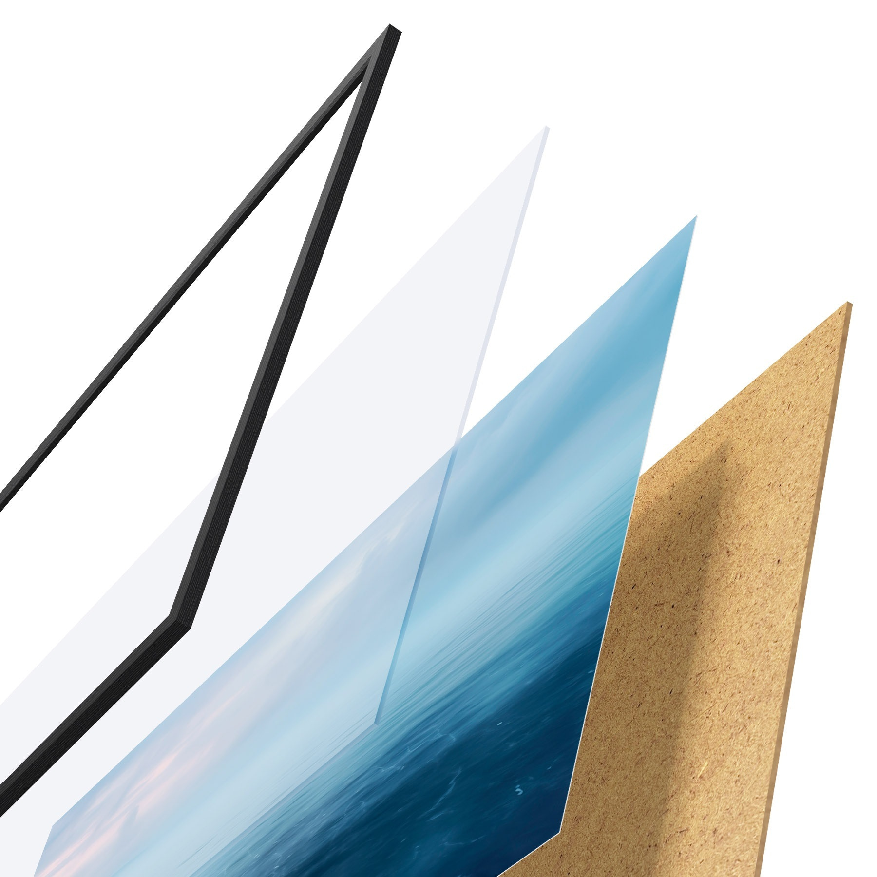 Plakatą sudaro rėmas, pleksiklas, atspausdintas vaizdas ir medžio drožlių plokštės pagrindas. Plakatą galima iš karto pakabinti ant sienos dėl kitoje pusėje esančių laikiklių.