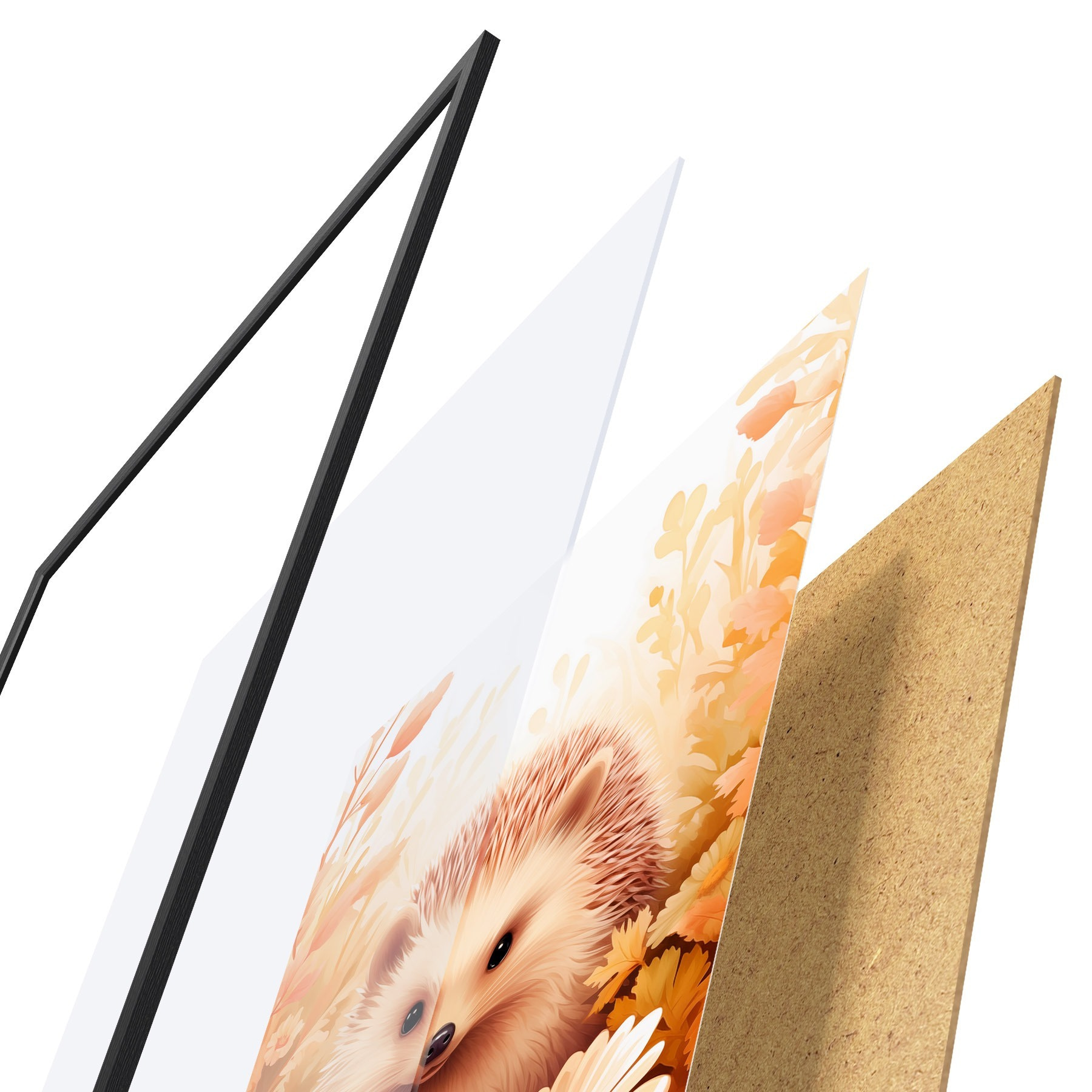 Plakatą sudaro rėmas, pleksiklas, atspausdintas vaizdas ir medžio drožlių plokštės pagrindas. Plakatą galima iš karto pakabinti ant sienos dėl kitoje pusėje esančių laikiklių.