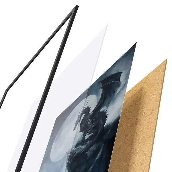 Plakatą sudaro rėmas, pleksiklas, atspausdintas vaizdas ir medžio drožlių plokštės pagrindas. Plakatą galima iš karto pakabinti ant sienos dėl kitoje pusėje esančių laikiklių.