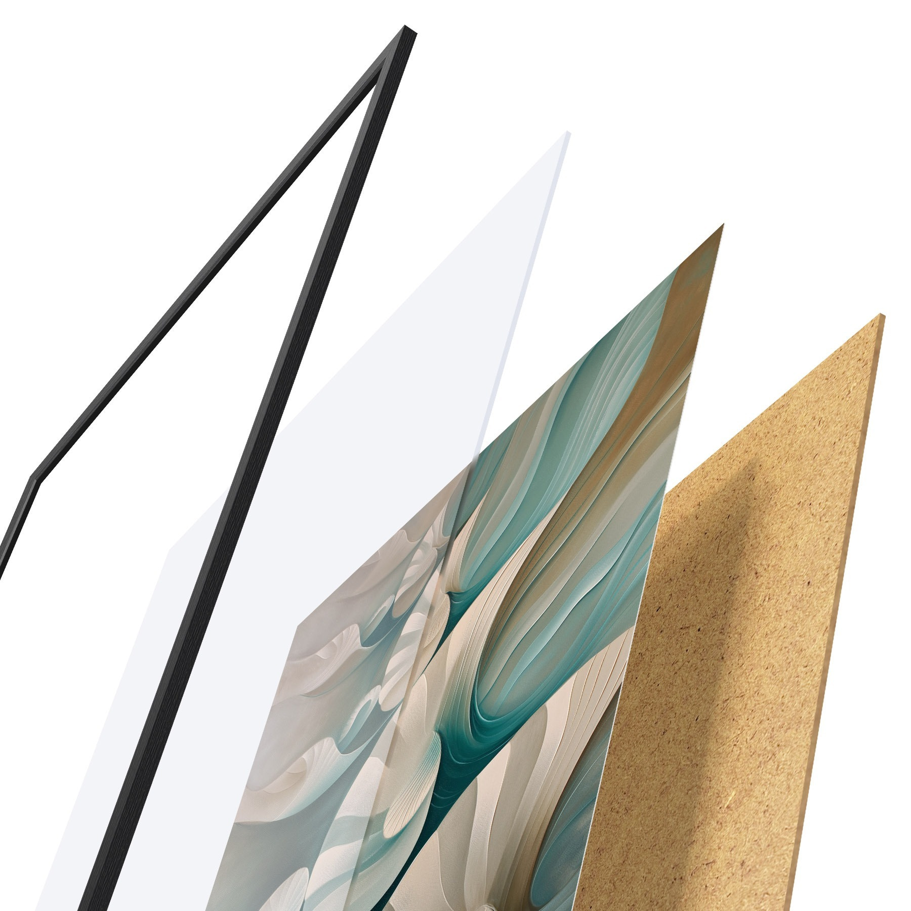 Plakatą sudaro rėmas, pleksiklas, atspausdintas vaizdas ir medžio drožlių plokštės pagrindas. Plakatą galima iš karto pakabinti ant sienos dėl kitoje pusėje esančių laikiklių.