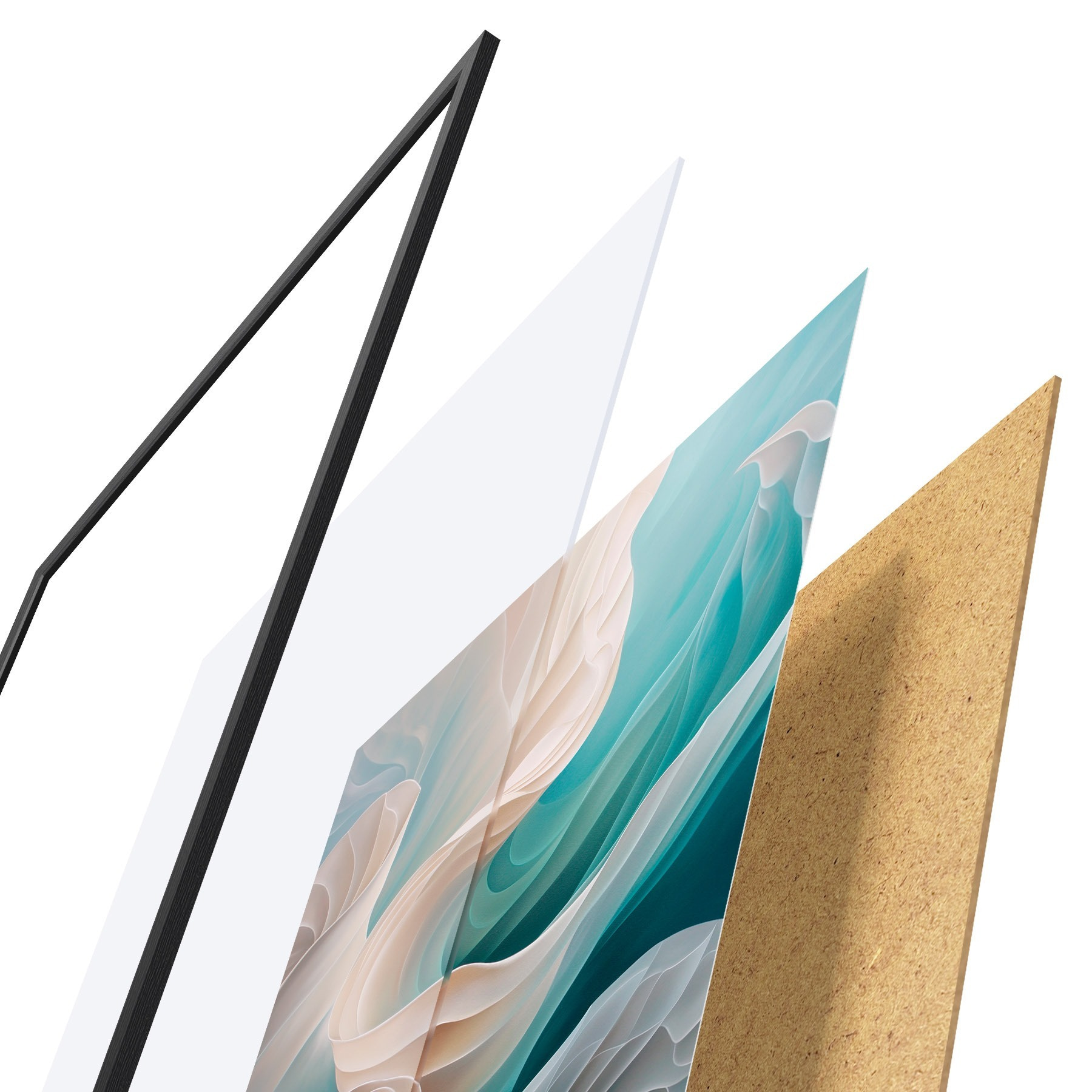 Plakatą sudaro rėmas, pleksiklas, atspausdintas vaizdas ir medžio drožlių plokštės pagrindas. Plakatą galima iš karto pakabinti ant sienos dėl kitoje pusėje esančių laikiklių.