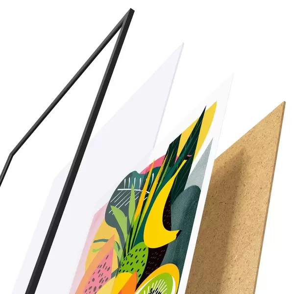 Plakatą sudaro rėmas, pleksiklas, atspausdintas vaizdas ir medžio drožlių plokštės pagrindas. Plakatą galima iš karto pakabinti ant sienos dėl kitoje pusėje esančių laikiklių.