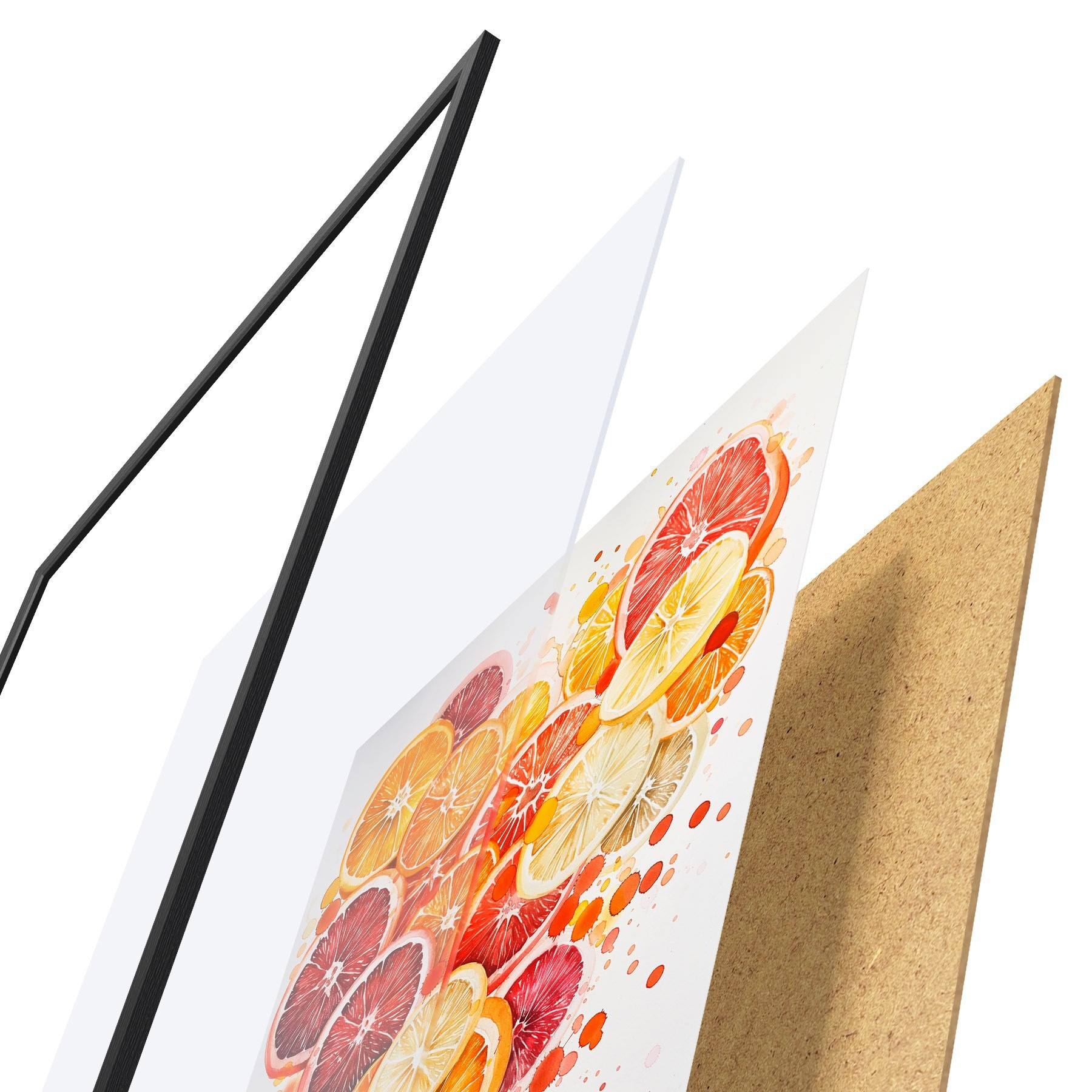 Plakatą sudaro rėmas, pleksiklas, atspausdintas vaizdas ir medžio drožlių plokštės pagrindas. Plakatą galima iš karto pakabinti ant sienos dėl kitoje pusėje esančių laikiklių.