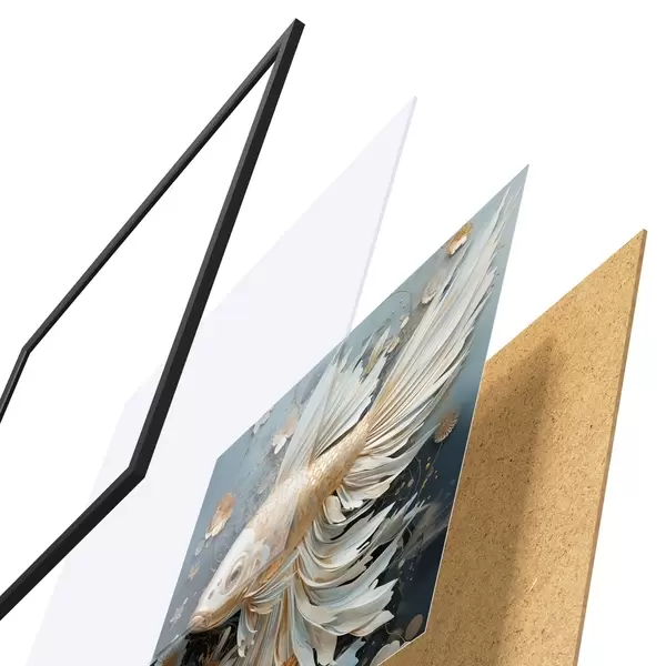 Plakatą sudaro rėmas, pleksiklas, atspausdintas vaizdas ir medžio drožlių plokštės pagrindas. Plakatą galima iš karto pakabinti ant sienos dėl kitoje pusėje esančių laikiklių.