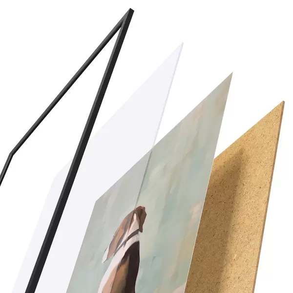 Plakatą sudaro rėmas, pleksiklas, atspausdintas vaizdas ir medžio drožlių plokštės pagrindas. Plakatą galima iš karto pakabinti ant sienos dėl kitoje pusėje esančių laikiklių.