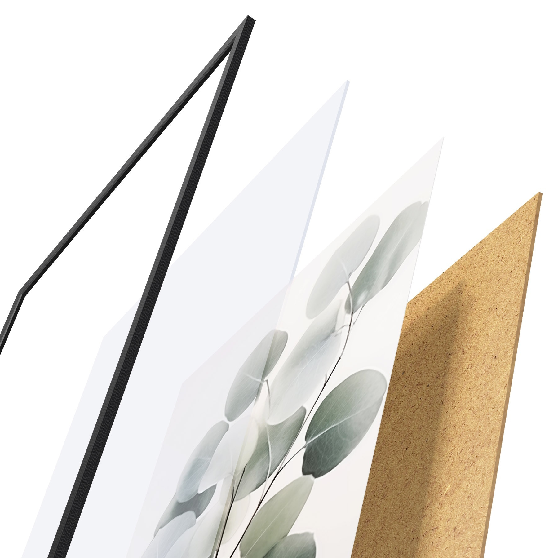 Plakatą sudaro rėmas, pleksiklas, atspausdintas vaizdas ir medžio drožlių plokštės pagrindas. Plakatą galima iš karto pakabinti ant sienos dėl kitoje pusėje esančių laikiklių.