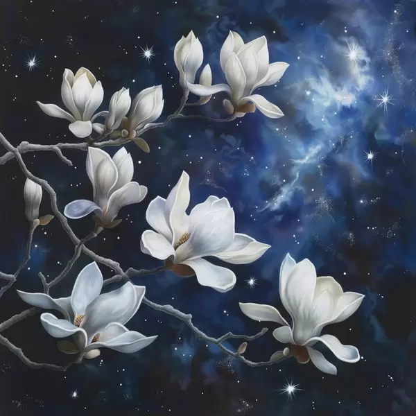 Plakatas Magnolijos žiedai dangaus fone f44585