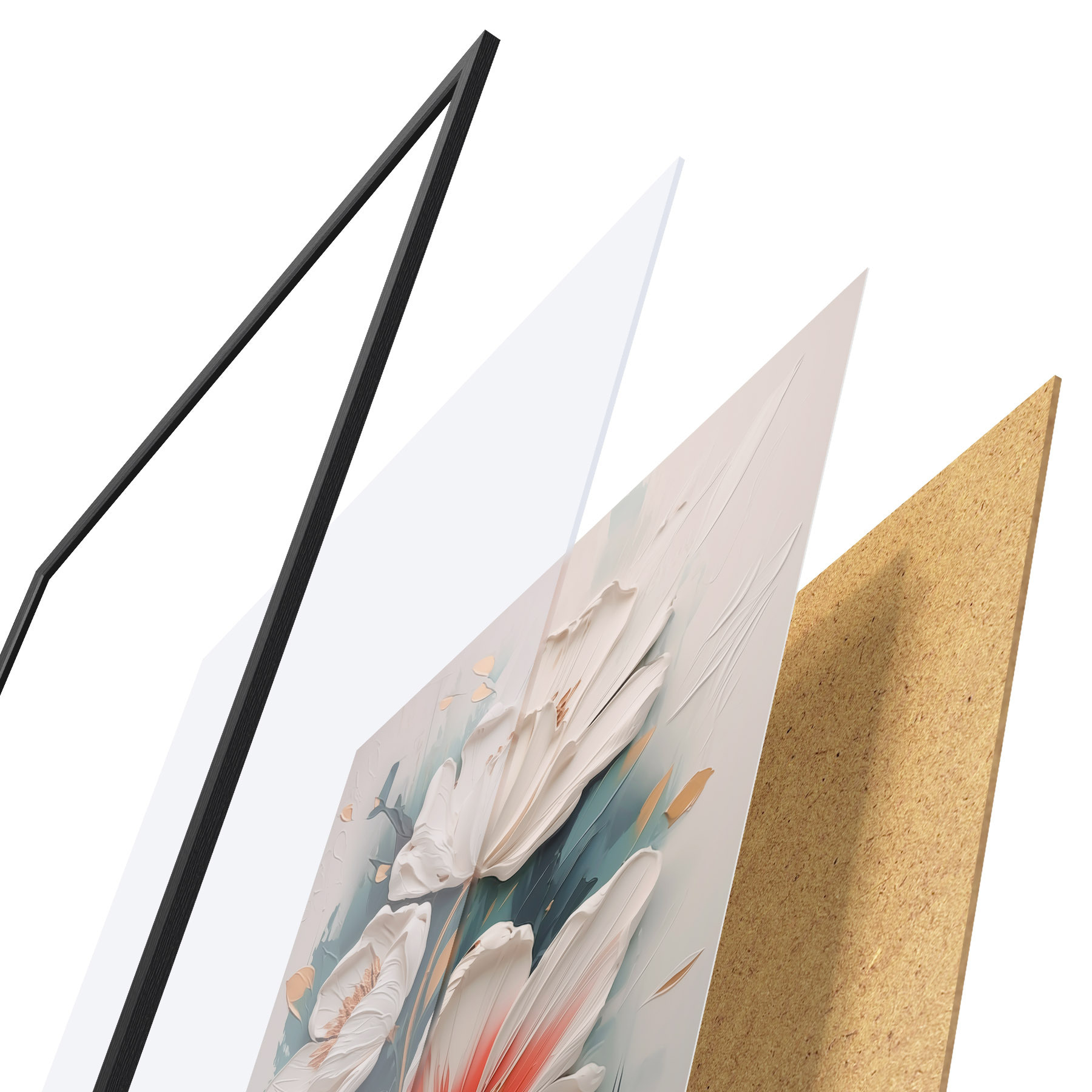 Plakatą sudaro rėmas, pleksiklas, atspausdintas vaizdas ir medžio drožlių plokštės pagrindas. Plakatą galima iš karto pakabinti ant sienos dėl kitoje pusėje esančių laikiklių.