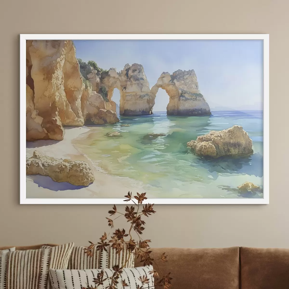 Plakatas Vandenyno paplūdimys su uolomis, Portugalija, vasara, akvamarinas Ne f44608
