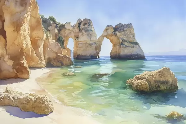 Plakatas Vandenyno paplūdimys su uolomis, Portugalija, vasara, akvamarinas f44608