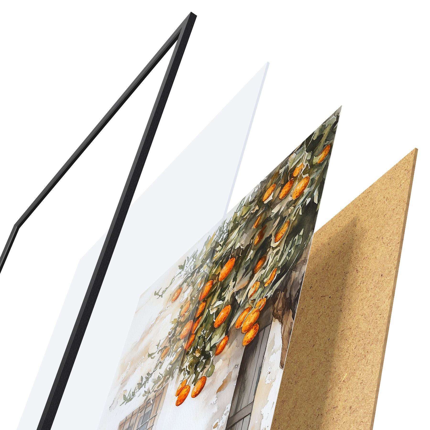 Plakatas Viduržemio jūros regiono baltas namas su apelsinmedžiu ir dviračiu Ne f44610