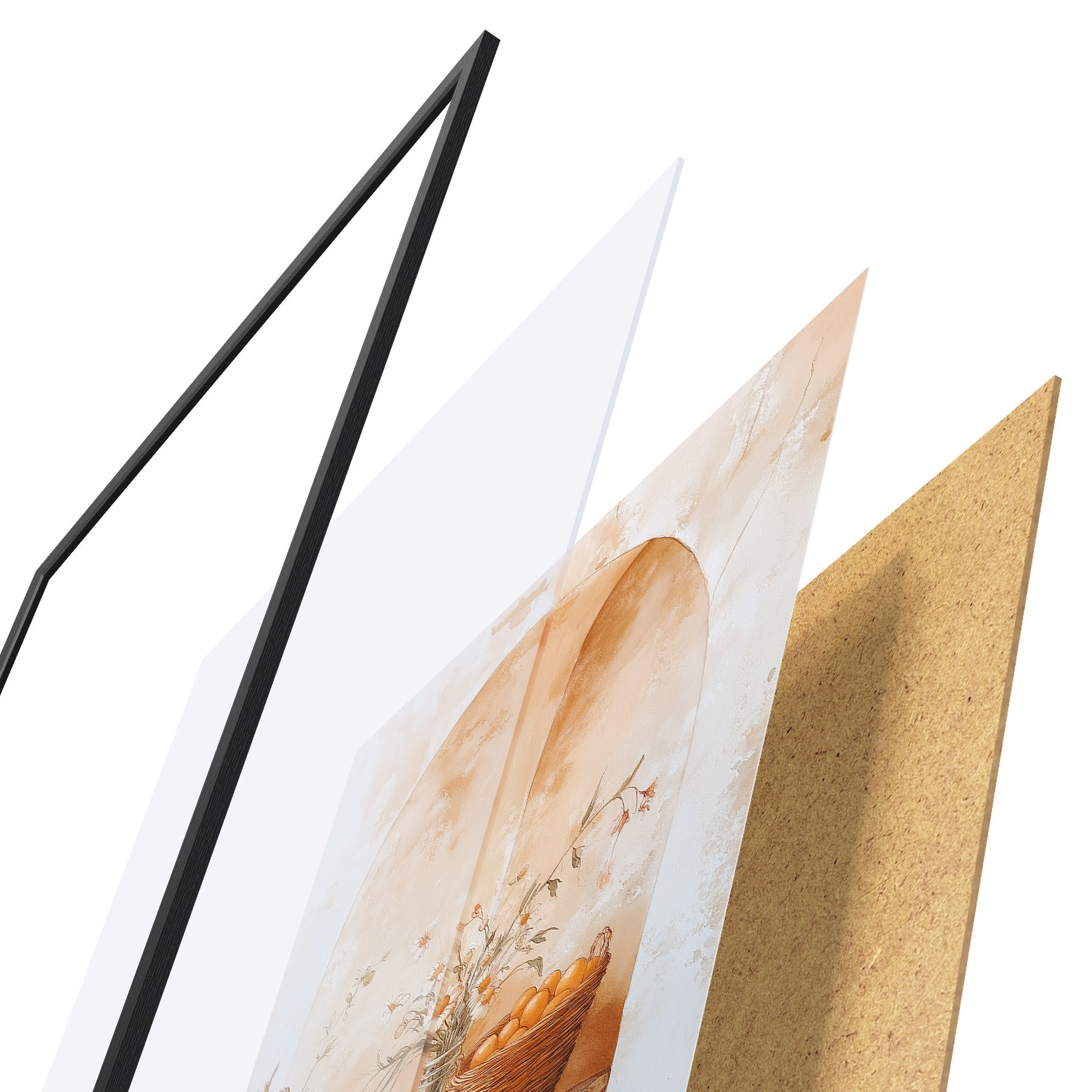 Plakatą sudaro rėmas, pleksiklas, atspausdintas vaizdas ir medžio drožlių plokštės pagrindas. Plakatą galima iš karto pakabinti ant sienos dėl kitoje pusėje esančių laikiklių.