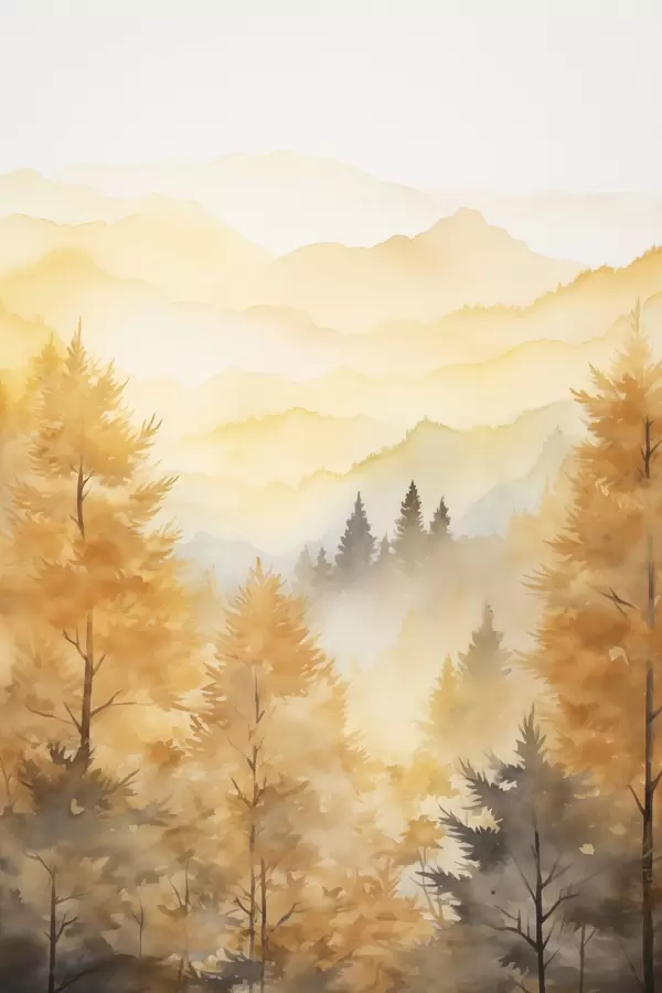 Plakatas Gražus rudens miškas su kalnais fone Ne f44614