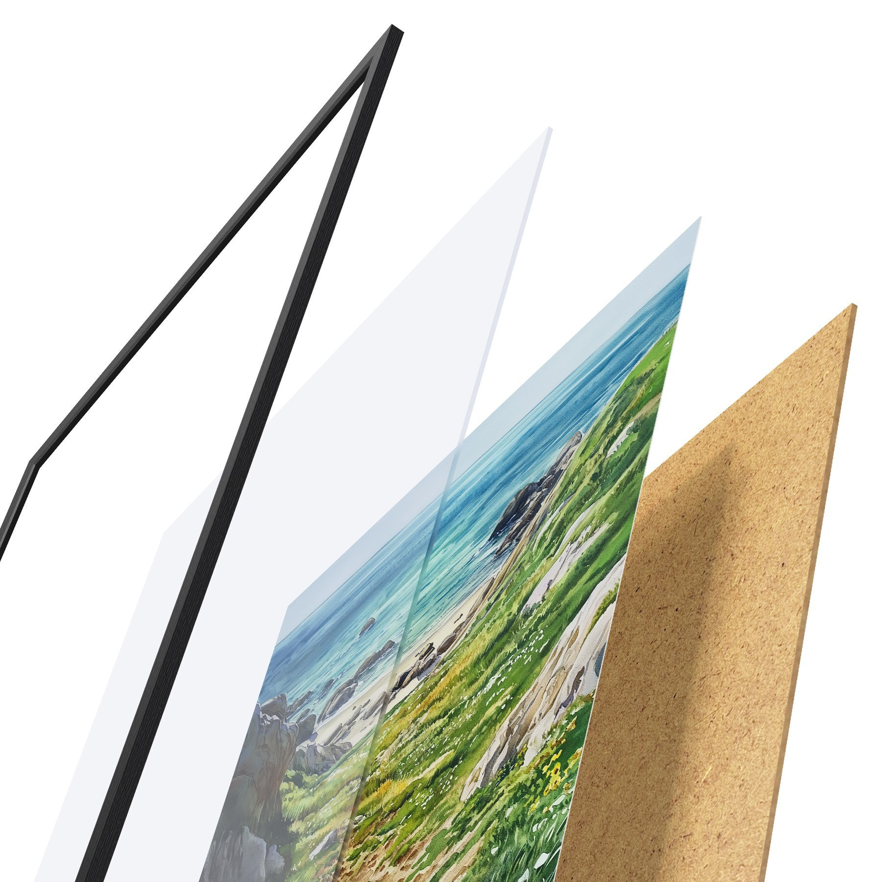 Plakatą sudaro rėmas, pleksiklas, atspausdintas vaizdas ir medžio drožlių plokštės pagrindas. Plakatą galima iš karto pakabinti ant sienos dėl kitoje pusėje esančių laikiklių.