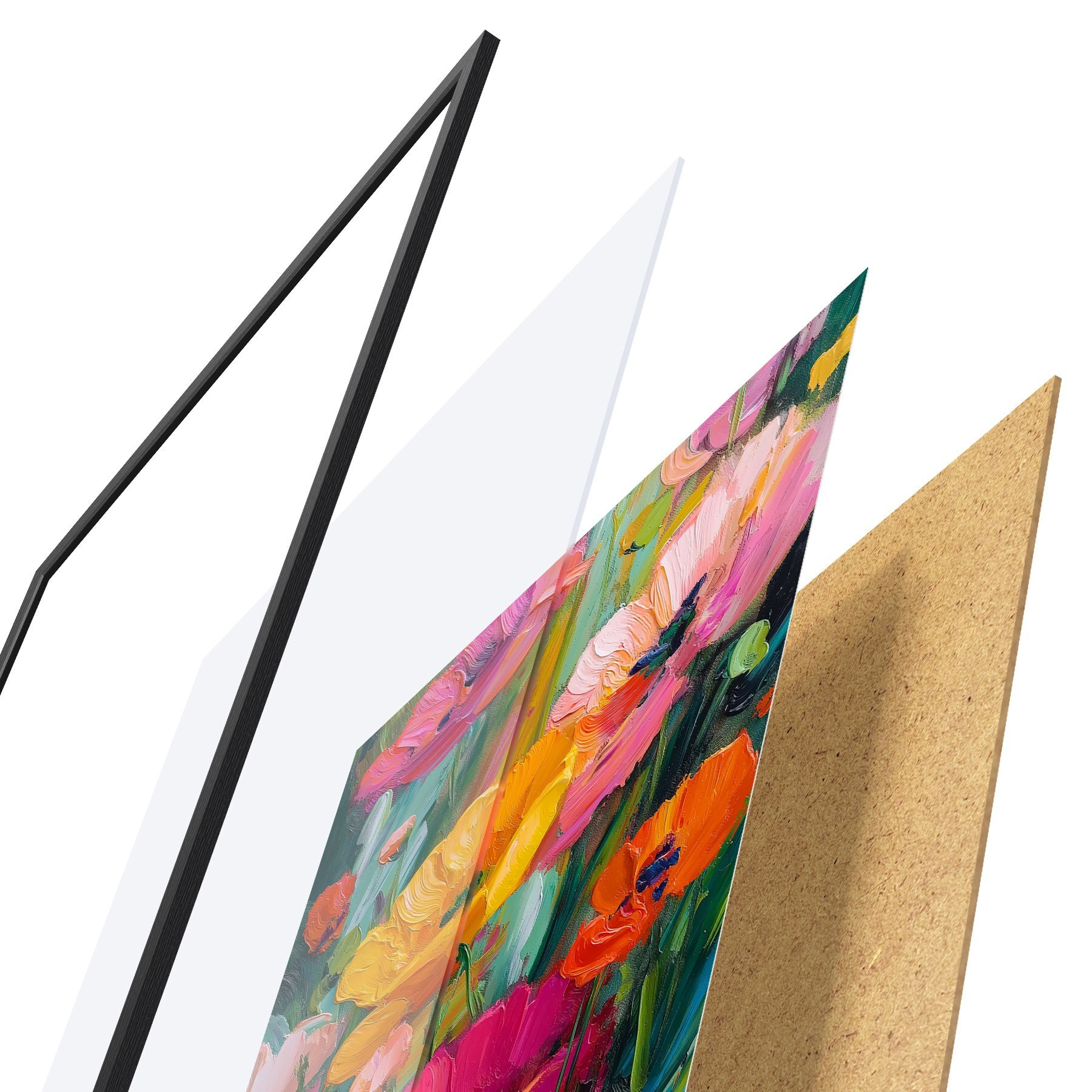 Plakatą sudaro rėmas, pleksiklas, atspausdintas vaizdas ir medžio drožlių plokštės pagrindas. Plakatą galima iš karto pakabinti ant sienos dėl kitoje pusėje esančių laikiklių.