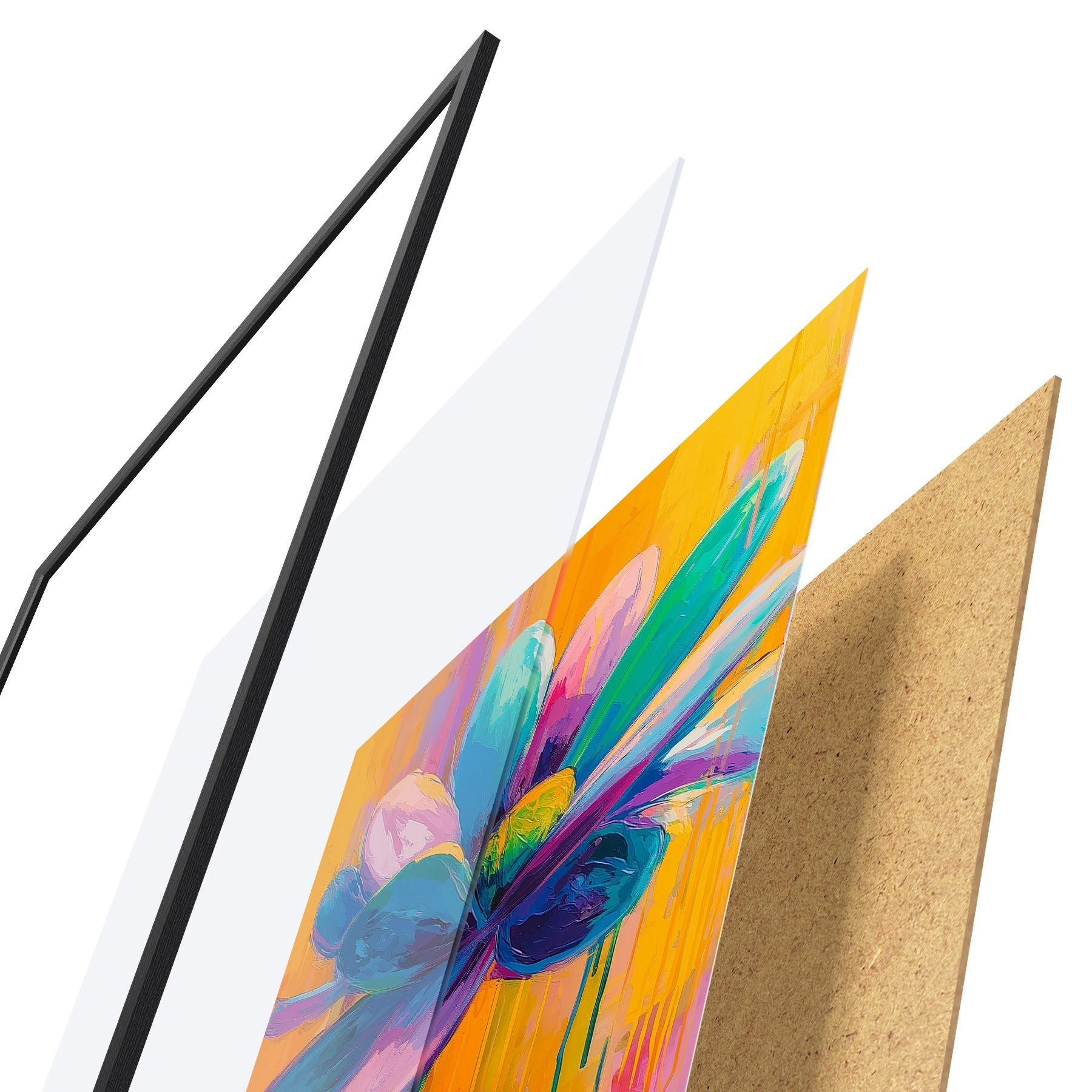 Plakatą sudaro rėmas, pleksiklas, atspausdintas vaizdas ir medžio drožlių plokštės pagrindas. Plakatą galima iš karto pakabinti ant sienos dėl kitoje pusėje esančių laikiklių.