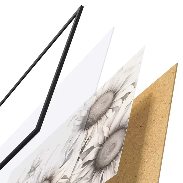 Plakatą sudaro rėmas, pleksiklas, atspausdintas vaizdas ir medžio drožlių plokštės pagrindas. Plakatą galima iš karto pakabinti ant sienos dėl kitoje pusėje esančių laikiklių.