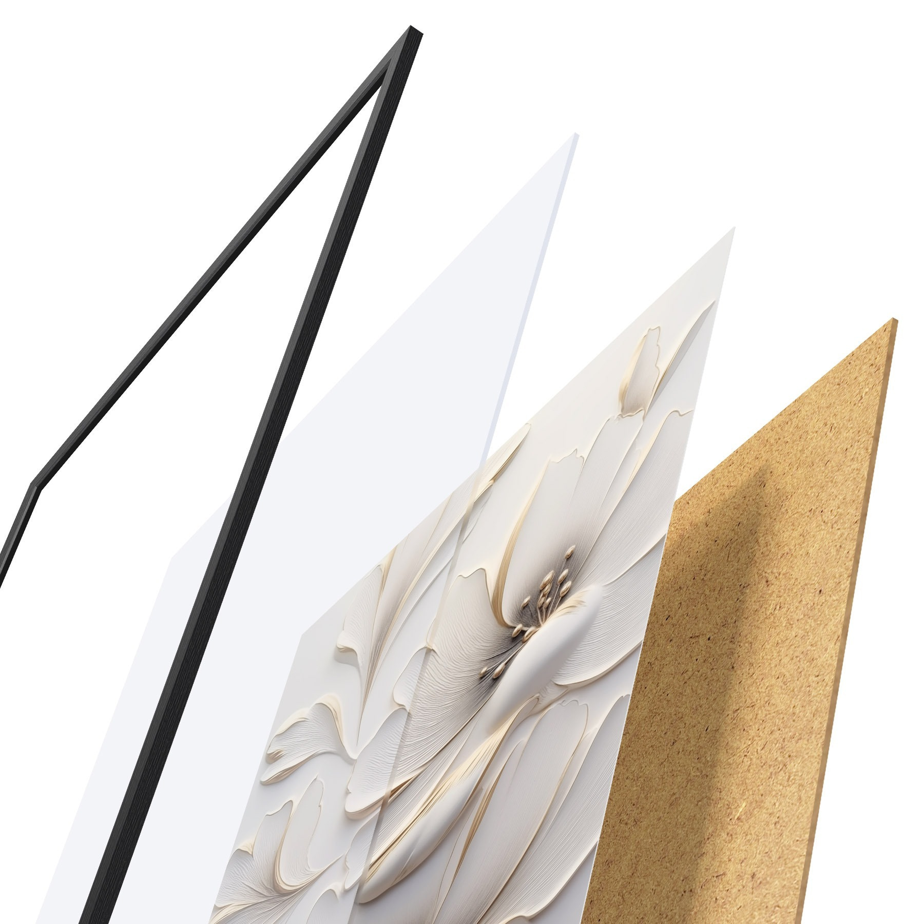 Plakatą sudaro rėmas, pleksiklas, atspausdintas vaizdas ir medžio drožlių plokštės pagrindas. Plakatą galima iš karto pakabinti ant sienos dėl kitoje pusėje esančių laikiklių.