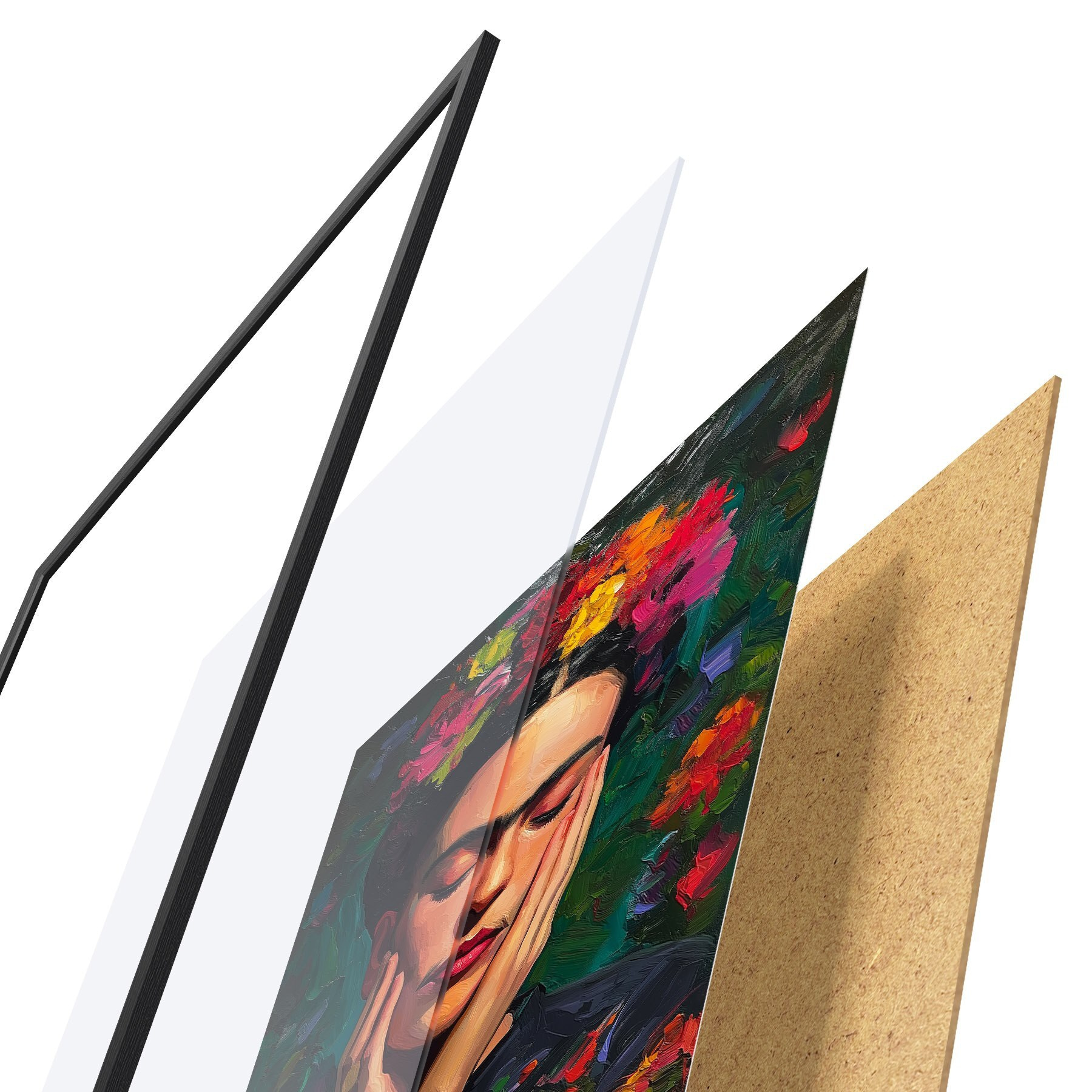 Plakatą sudaro rėmas, pleksiklas, atspausdintas vaizdas ir medžio drožlių plokštės pagrindas. Plakatą galima iš karto pakabinti ant sienos dėl kitoje pusėje esančių laikiklių.