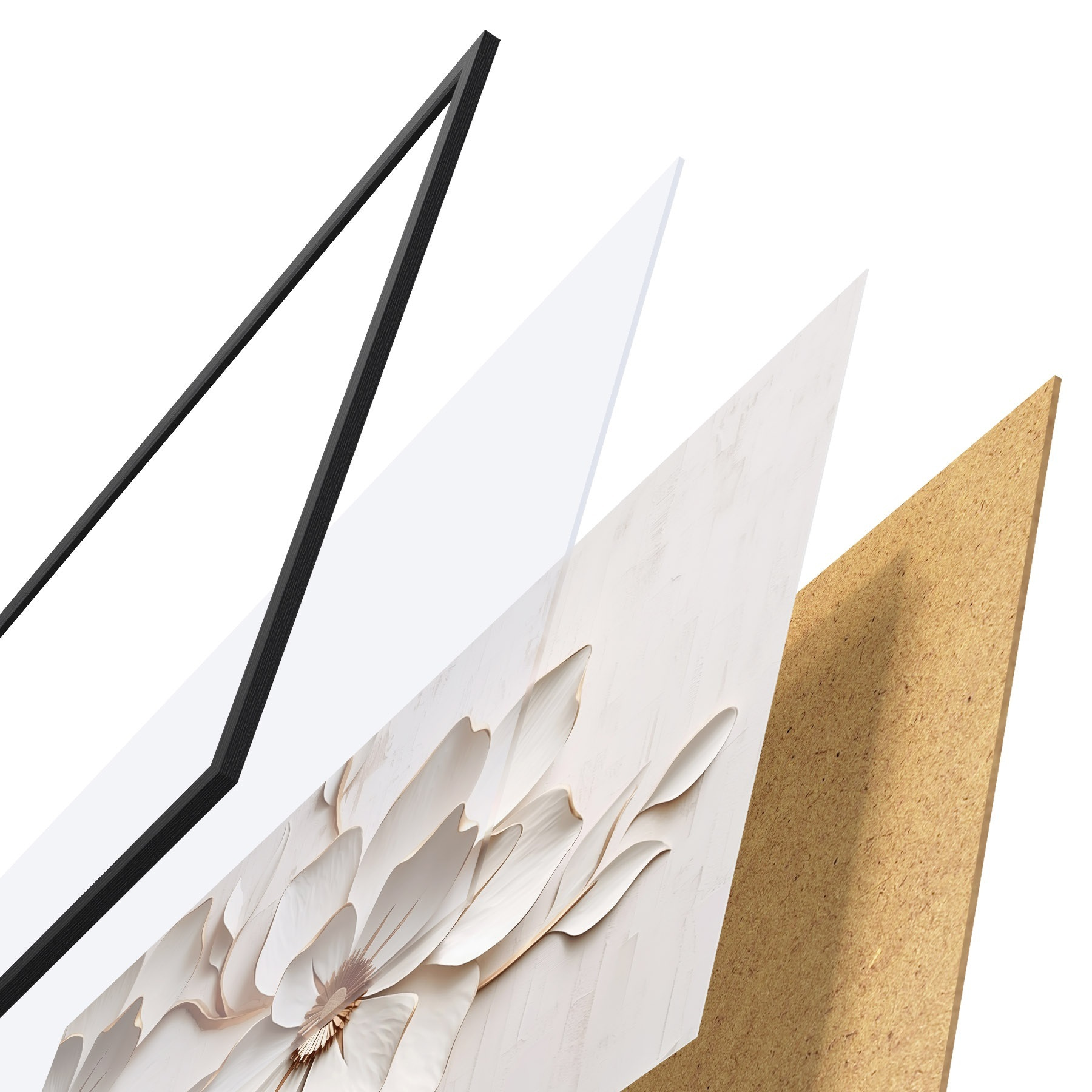 Plakatą sudaro rėmas, pleksiklas, atspausdintas vaizdas ir medžio drožlių plokštės pagrindas. Plakatą galima iš karto pakabinti ant sienos dėl kitoje pusėje esančių laikiklių.