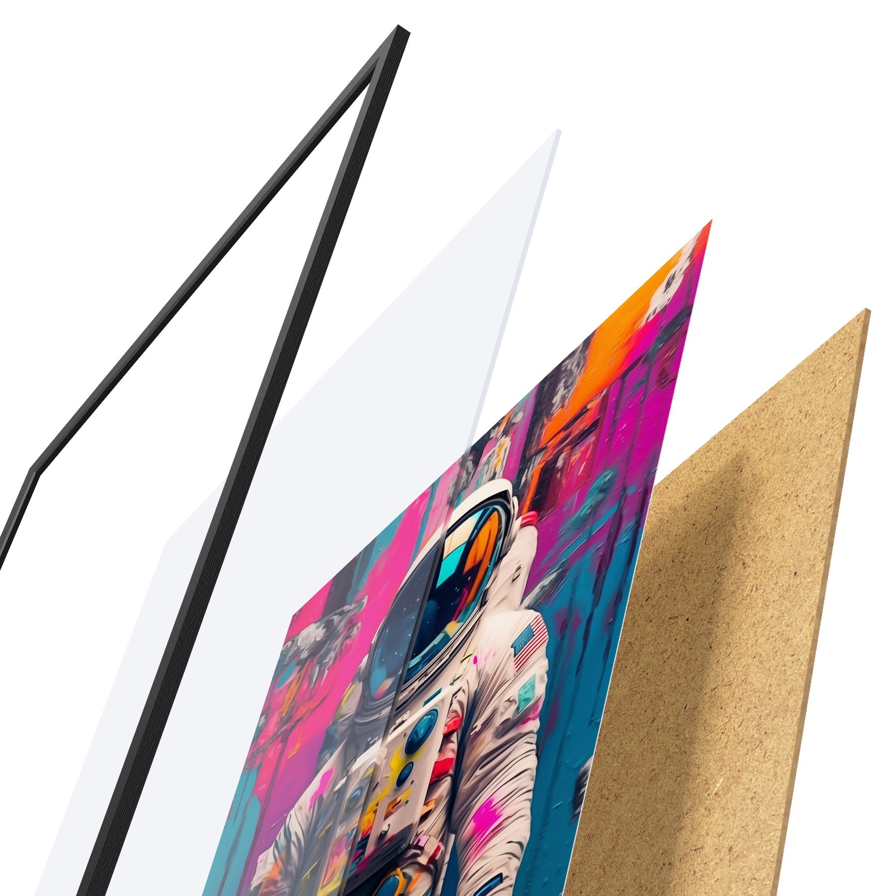 Plakatą sudaro rėmas, pleksiklas, atspausdintas vaizdas ir medžio drožlių plokštės pagrindas. Plakatą galima iš karto pakabinti ant sienos dėl kitoje pusėje esančių laikiklių.