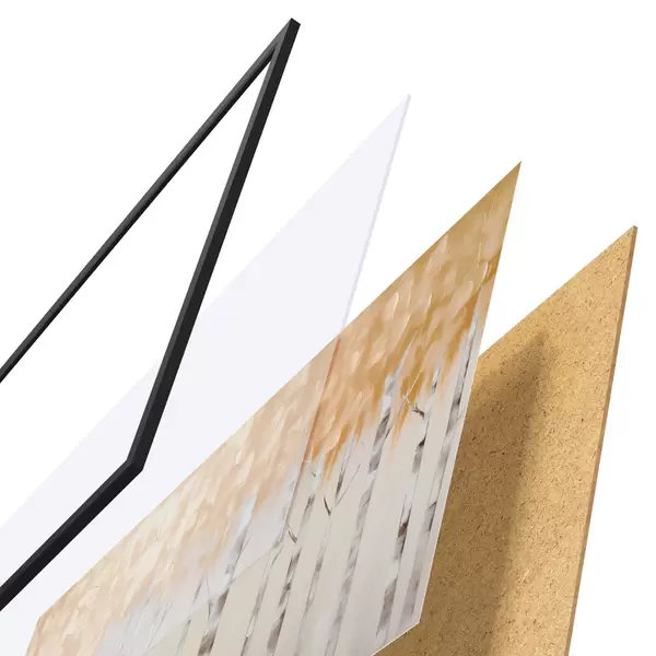 Plakatą sudaro rėmas, pleksiklas, atspausdintas vaizdas ir medžio drožlių plokštės pagrindas. Plakatą galima iš karto pakabinti ant sienos dėl kitoje pusėje esančių laikiklių.