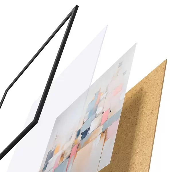 Plakatą sudaro rėmas, pleksiklas, atspausdintas vaizdas ir medžio drožlių plokštės pagrindas. Plakatą galima iš karto pakabinti ant sienos dėl kitoje pusėje esančių laikiklių.