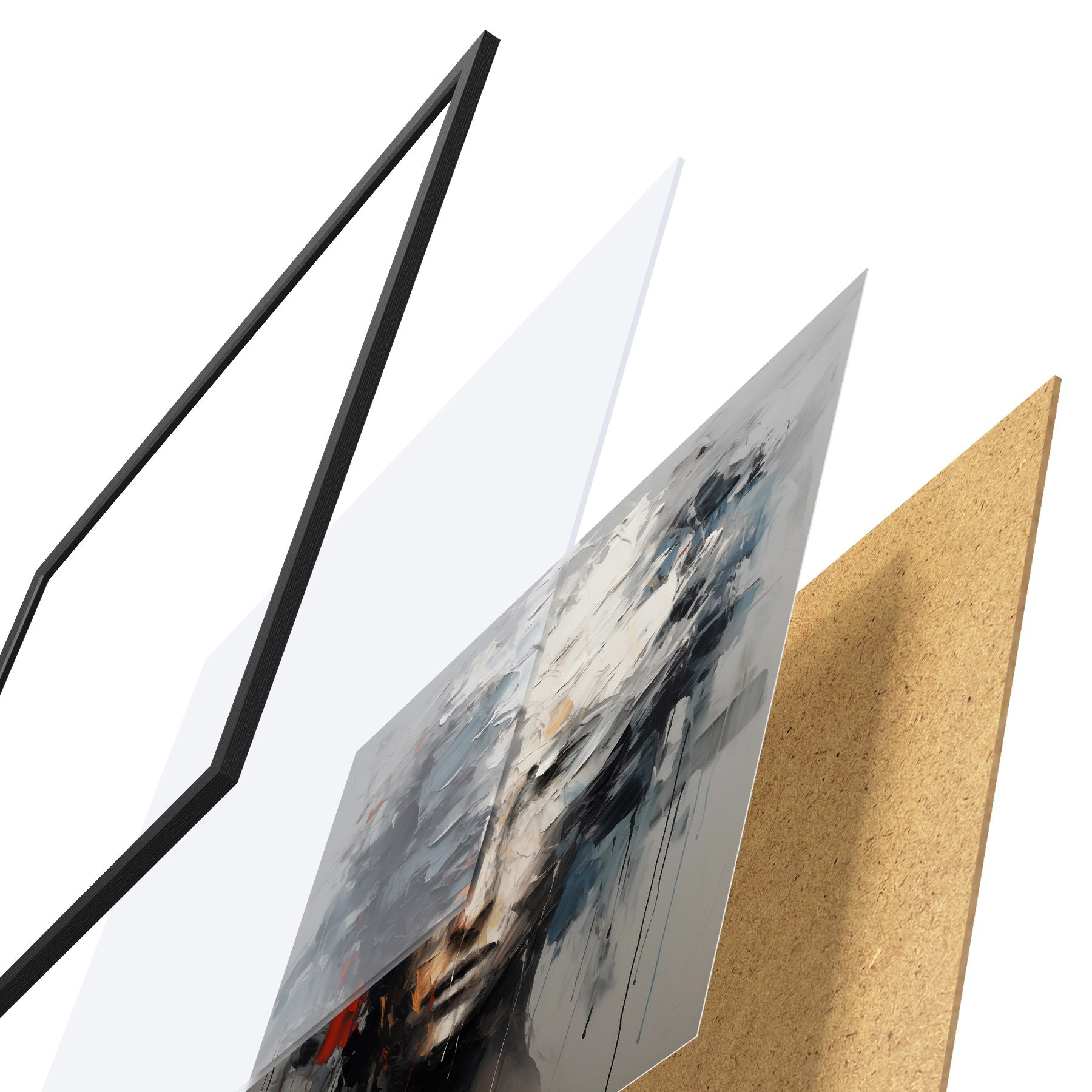 Plakatą sudaro rėmas, pleksiklas, atspausdintas vaizdas ir medžio drožlių plokštės pagrindas. Plakatą galima iš karto pakabinti ant sienos dėl kitoje pusėje esančių laikiklių.