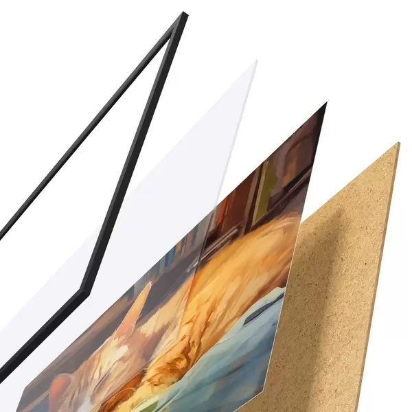 Plakatą sudaro rėmas, pleksiklas, atspausdintas vaizdas ir medžio drožlių plokštės pagrindas. Plakatą galima iš karto pakabinti ant sienos dėl kitoje pusėje esančių laikiklių.