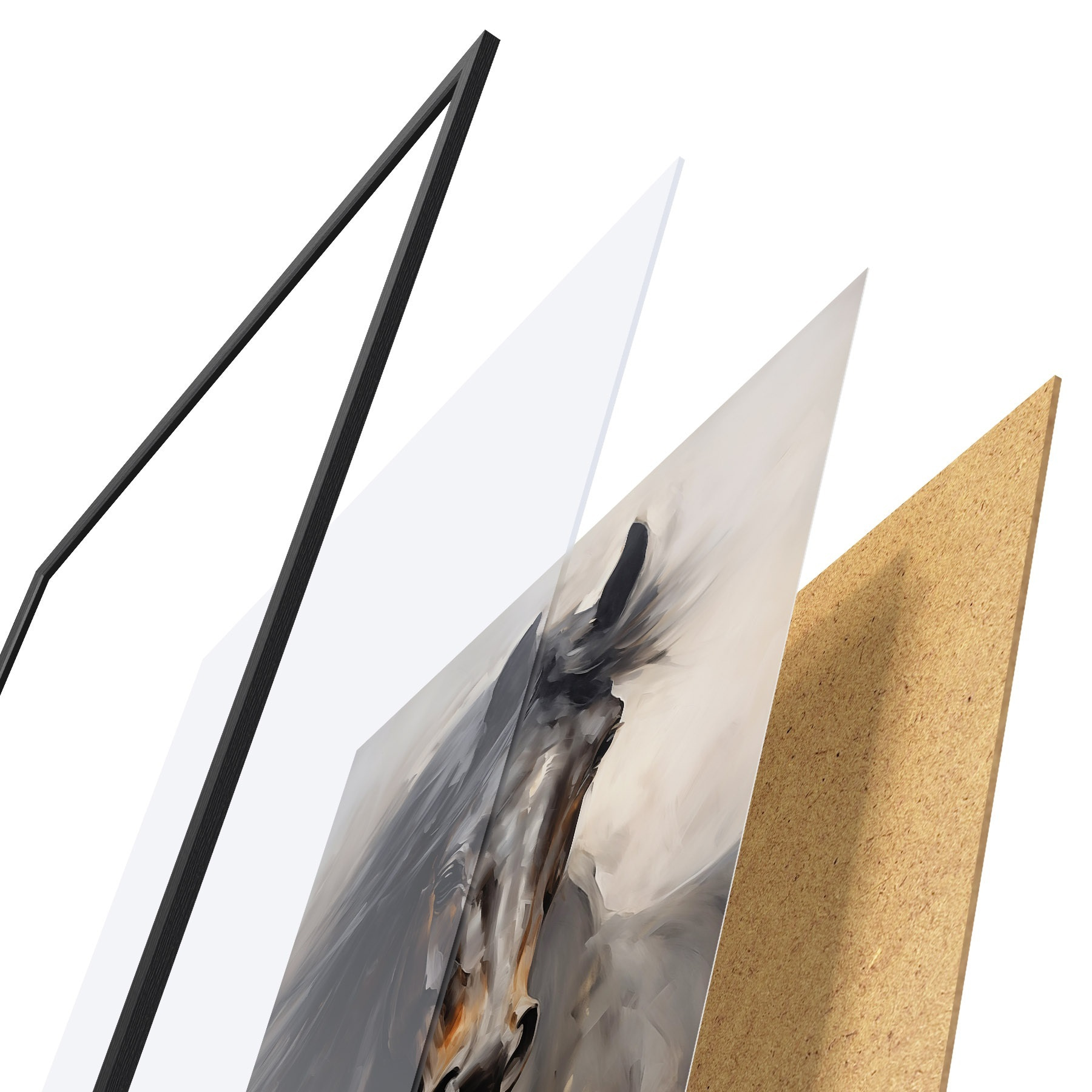 Plakatą sudaro rėmas, pleksiklas, atspausdintas vaizdas ir medžio drožlių plokštės pagrindas. Plakatą galima iš karto pakabinti ant sienos dėl kitoje pusėje esančių laikiklių.