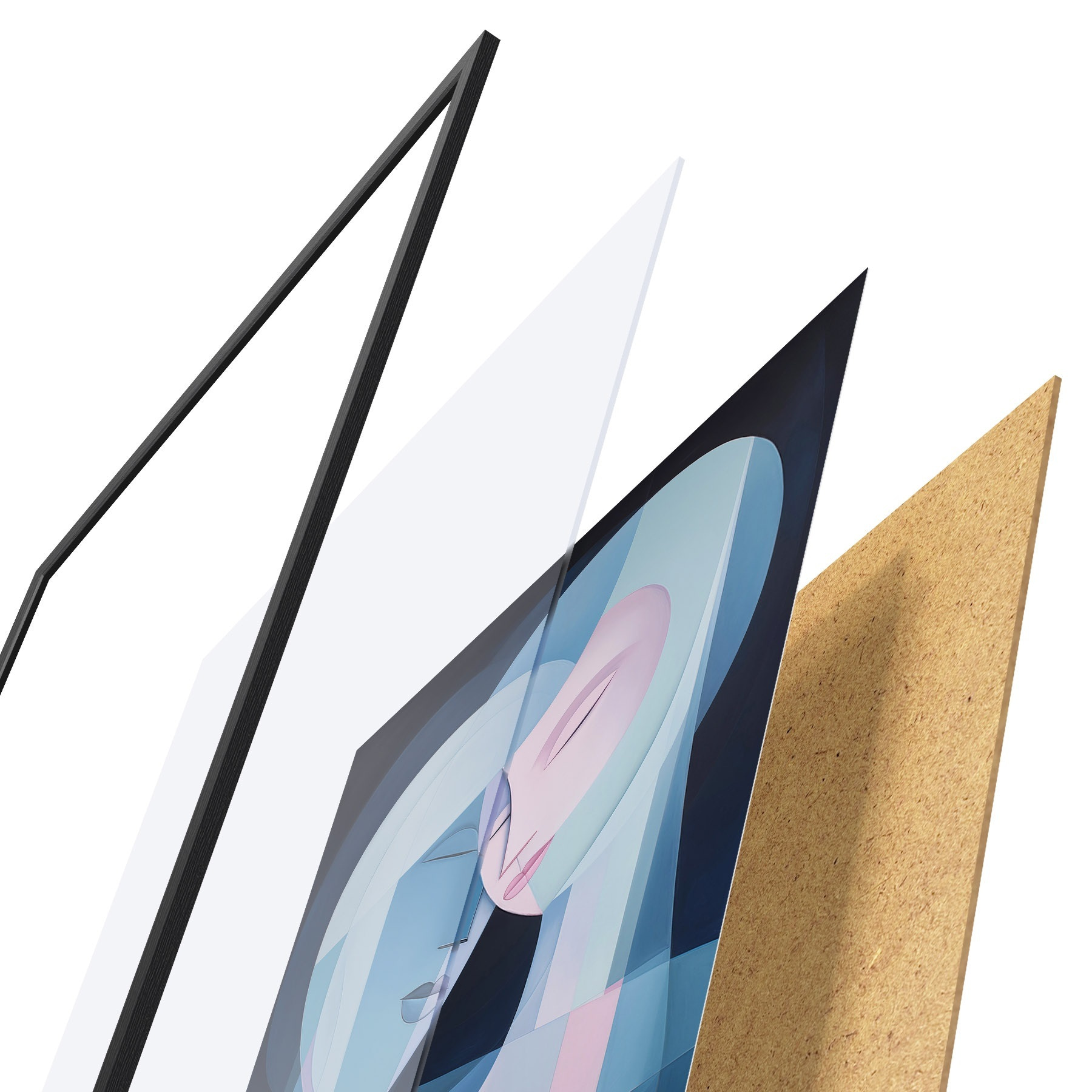 Plakatą sudaro rėmas, pleksiklas, atspausdintas vaizdas ir medžio drožlių plokštės pagrindas. Plakatą galima iš karto pakabinti ant sienos dėl kitoje pusėje esančių laikiklių.
