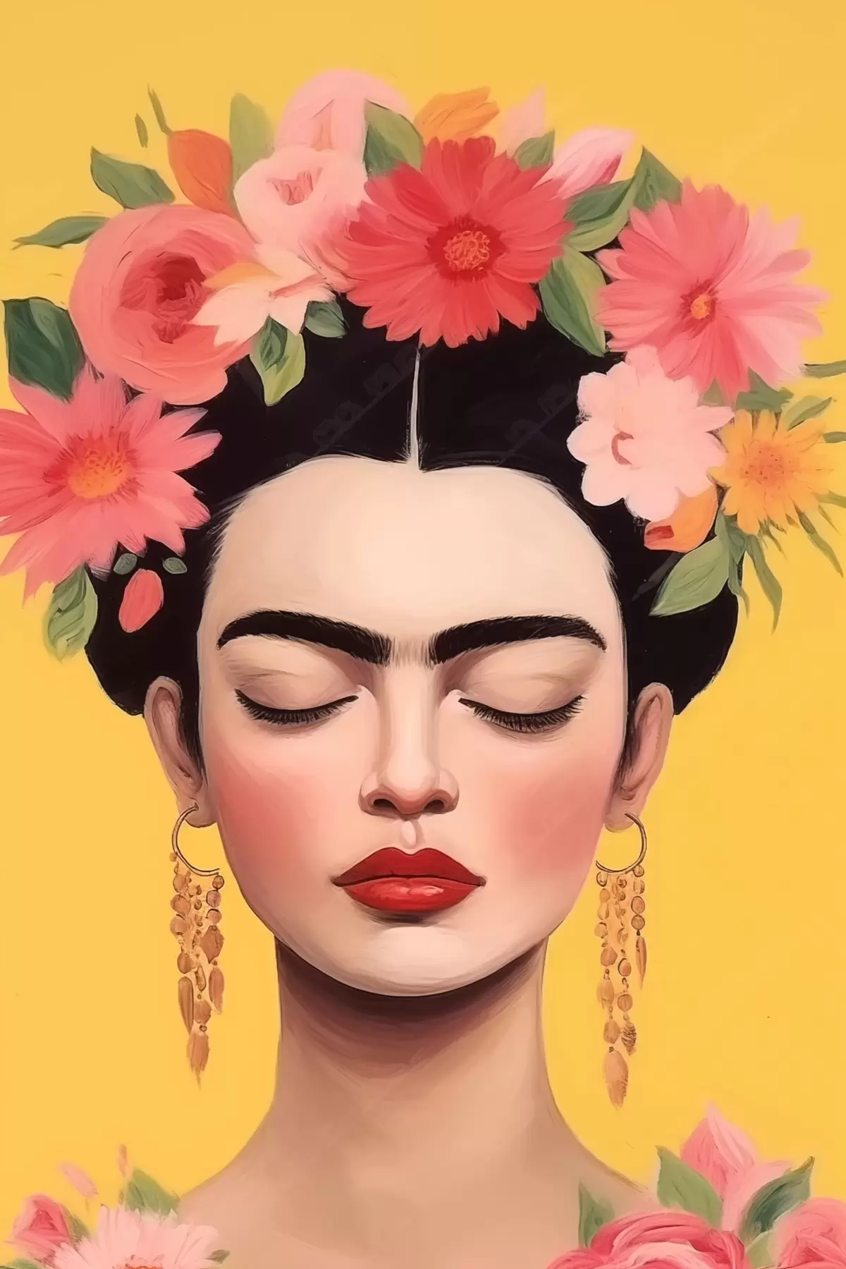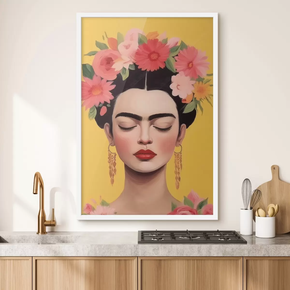 Plakatas Moters portretas su gėlėmis plaukuose f44680