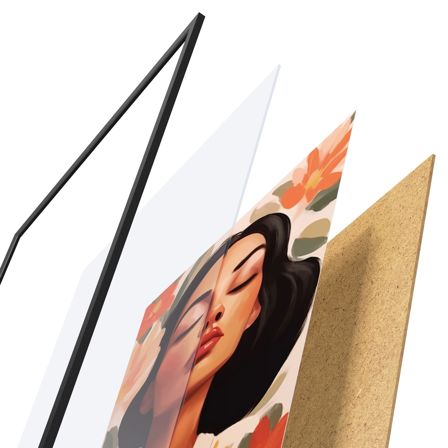 Plakatą sudaro rėmas, pleksiklas, atspausdintas vaizdas ir medžio drožlių plokštės pagrindas. Plakatą galima iš karto pakabinti ant sienos dėl kitoje pusėje esančių laikiklių.