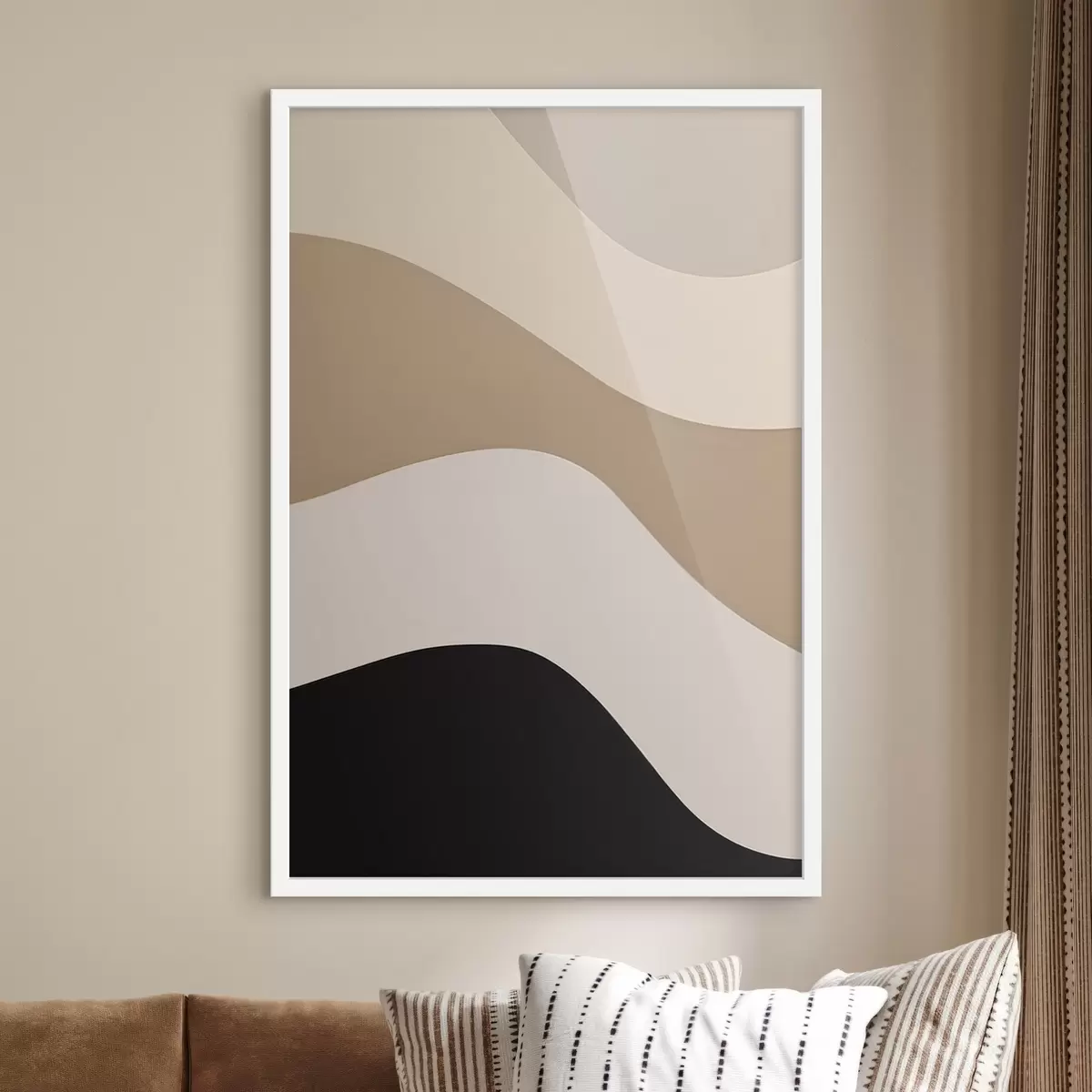 Plakatas Abstrakčios smėlio ir juodos spalvos bangos f44687