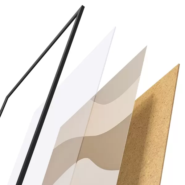 Plakatą sudaro rėmas, pleksiklas, atspausdintas vaizdas ir medžio drožlių plokštės pagrindas. Plakatą galima iš karto pakabinti ant sienos dėl kitoje pusėje esančių laikiklių.
