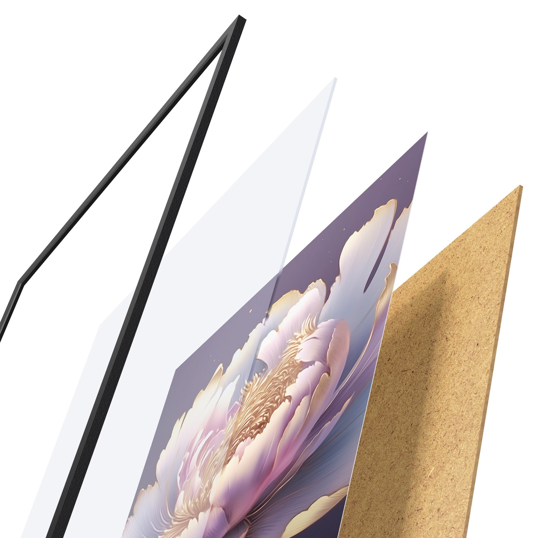 Plakatą sudaro rėmas, pleksiklas, atspausdintas vaizdas ir medžio drožlių plokštės pagrindas. Plakatą galima iš karto pakabinti ant sienos dėl kitoje pusėje esančių laikiklių.