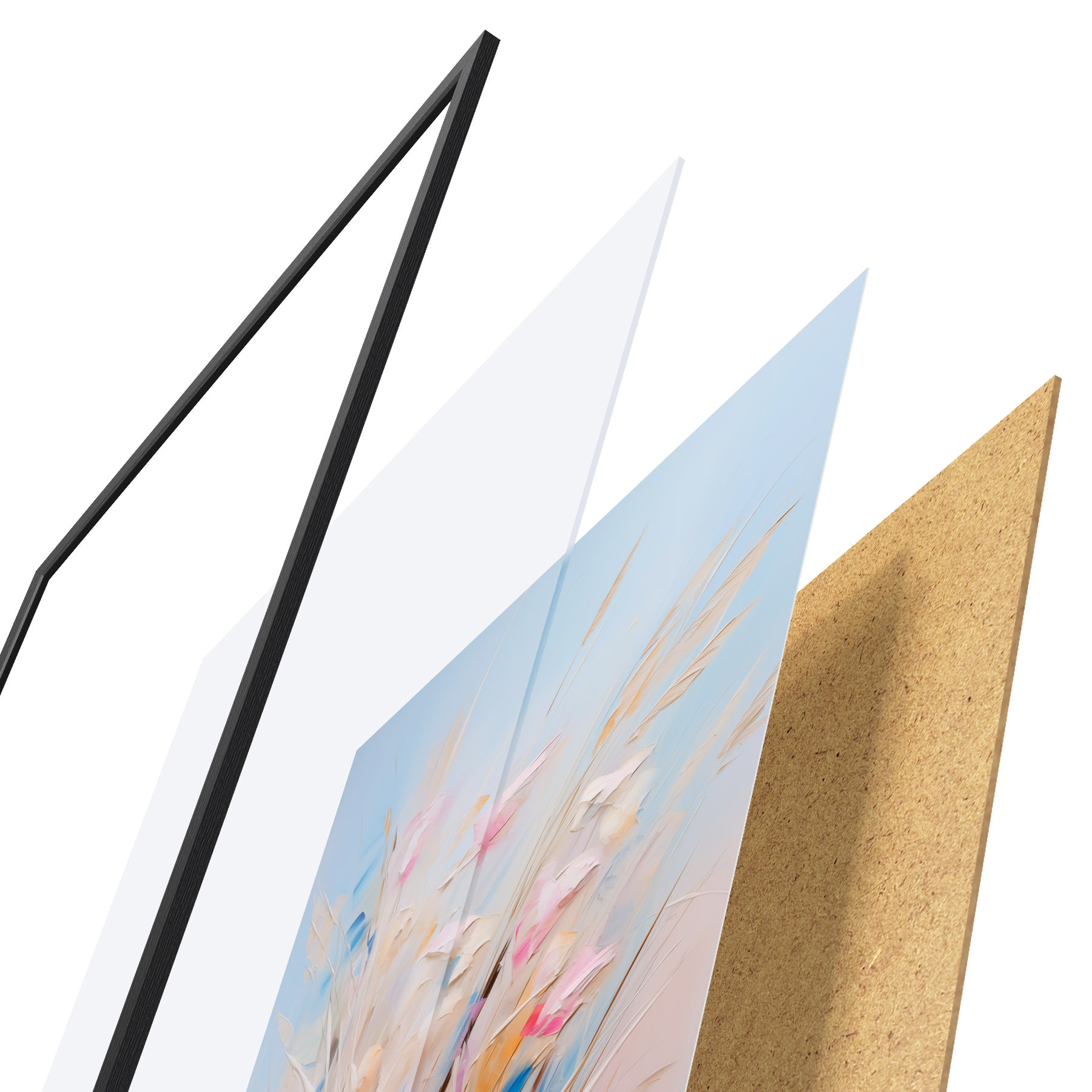 Plakatą sudaro rėmas, pleksiklas, atspausdintas vaizdas ir medžio drožlių plokštės pagrindas. Plakatą galima iš karto pakabinti ant sienos dėl kitoje pusėje esančių laikiklių.