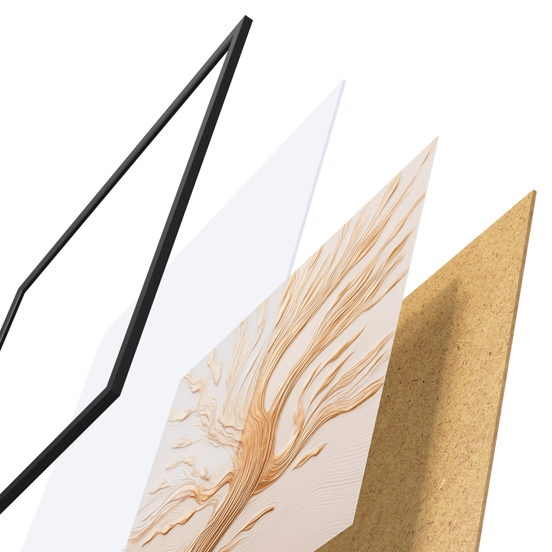 Plakatą sudaro rėmas, pleksiklas, atspausdintas vaizdas ir medžio drožlių plokštės pagrindas. Plakatą galima iš karto pakabinti ant sienos dėl kitoje pusėje esančių laikiklių.