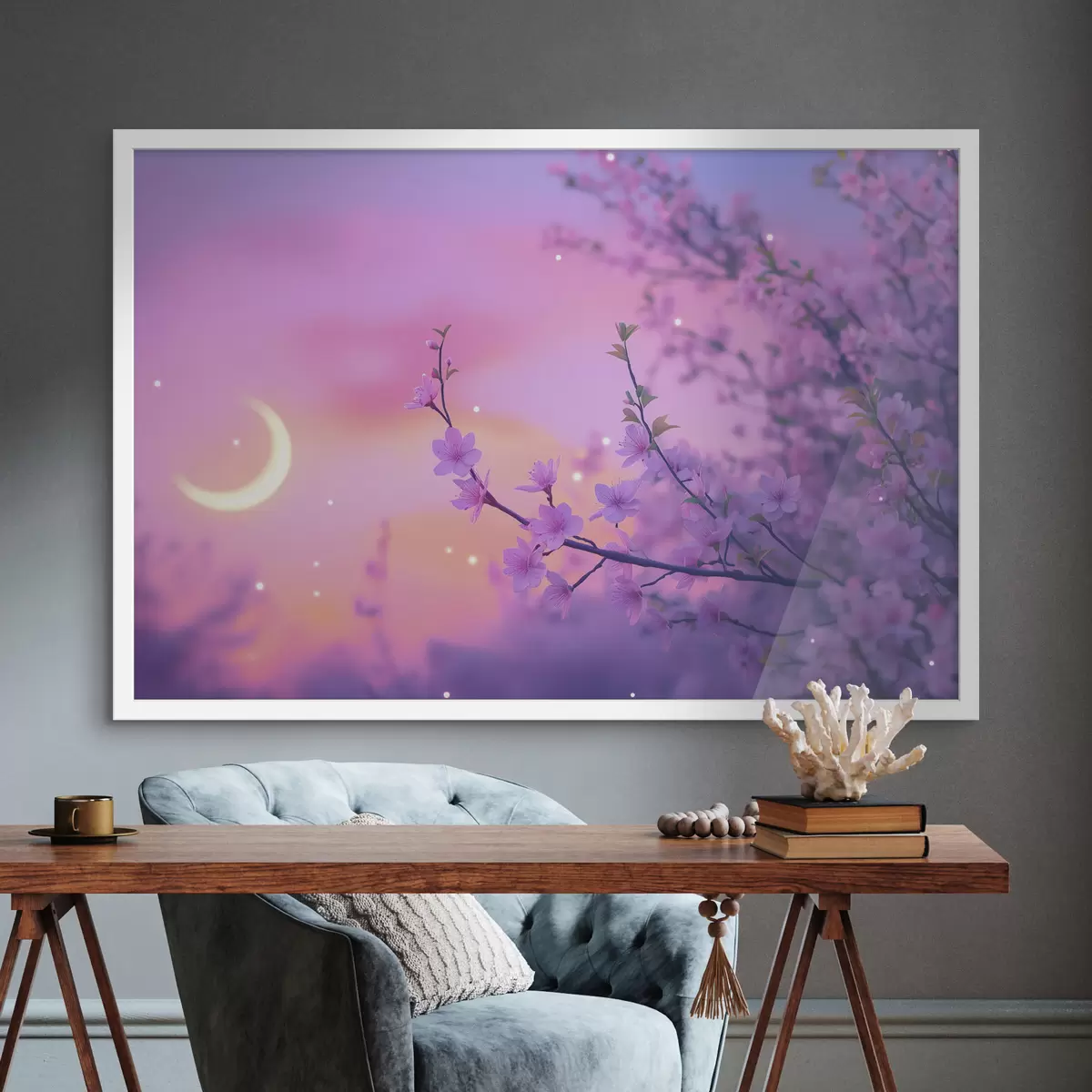 Plakatas Violetinis dangus su mėnuliu ir vyšniomis f44717