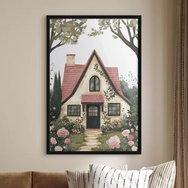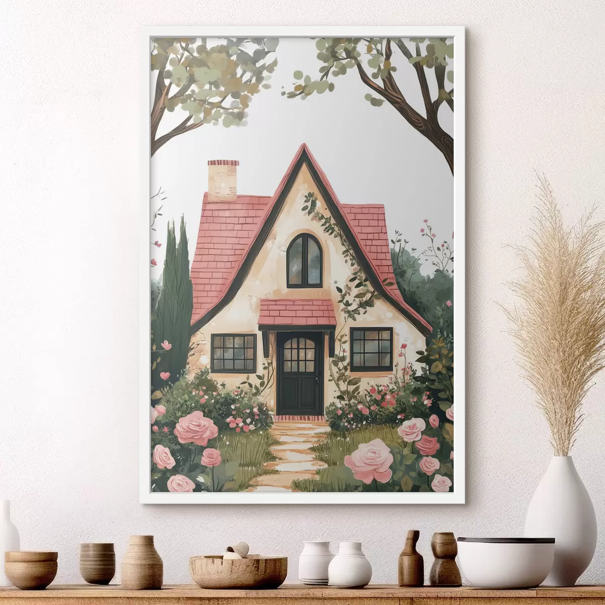 Plakatas Pasakų namelis miške, rožės, pastelinis stilius f44718