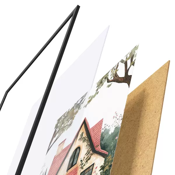 Plakatą sudaro rėmas, pleksiklas, atspausdintas vaizdas ir medžio drožlių plokštės pagrindas. Plakatą galima iš karto pakabinti ant sienos dėl kitoje pusėje esančių laikiklių.